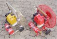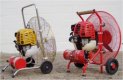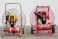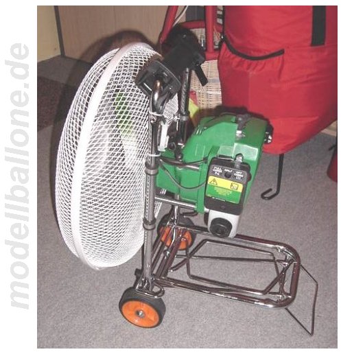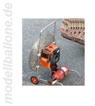 | Die am meisten verbreitete Variante von Aufrüstgebläsen zum Befüllen der Hülle mit Kaltluft sind Benzinmotore mit großer Luftschraube und Schutzgitter. Diese Einheiten kann man bei Lieferanten als komplette einsatzbereite Einheit erwerben. |