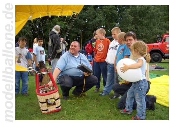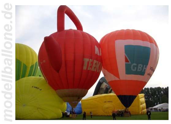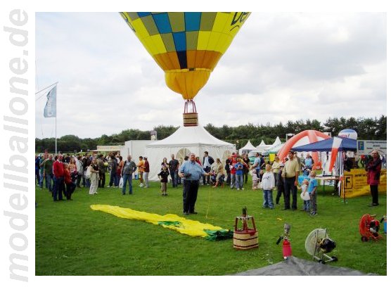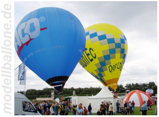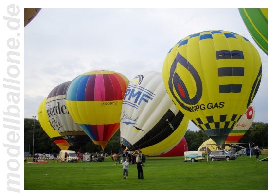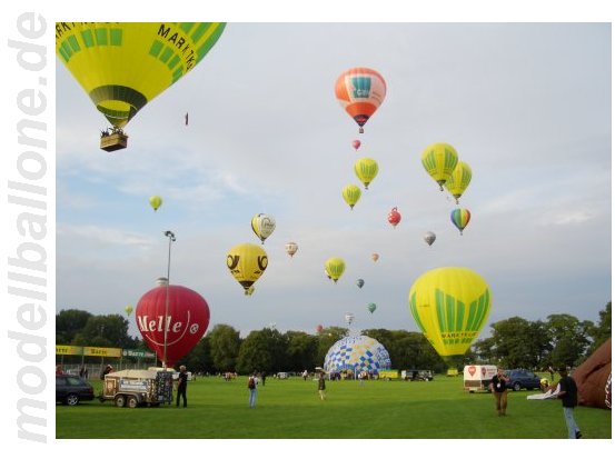 5. Marktkauf Ballon Fiesta 2005 Rund 50.000 Besucher, 50 Ballonteams und 3 Modellballone machten die diesjährige Ballonfiesta zu einem Erfolg. Zwar war der Freitag verregnet und kein Start möglich, doch am Samstag konnte bereits ein Morgenstart durchgeführt werden. Das Wetter hielt sich den ganzen Tag über und gegen Spätnachmittag erfolgte dann noch einmal ein Start der Ballone. Der Samstag wurde dann am Abend mit einem Feuerwerk und dem Ballonglühen erfolgreich abgeschlossen. Nachfolgend einige