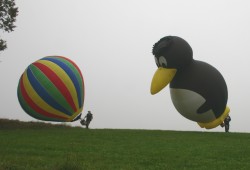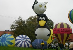 Die Modellballöner hatten ganz schön mit dem Wind zu kämpfen, bis schließlich einer nach dem anderen auf das Seil zusteuerte. |