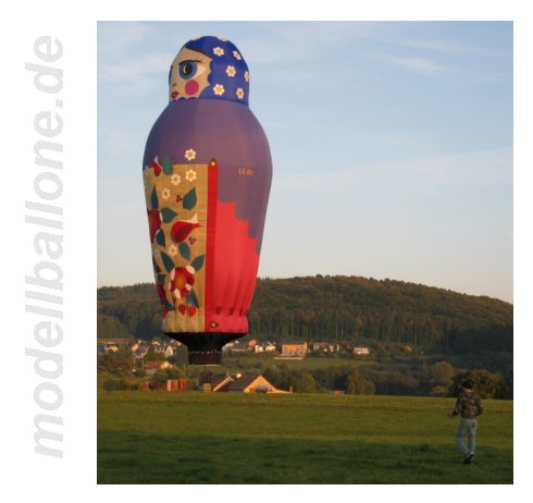zwischen 33 und 85 m³, meist Nachbauten von Aerostar/Raeven - Korb: Weidenkorb-Eigenbau, Einzelbrennergestell mit Primus-Brenner - Frequenzen: verschiedene im 35 Mhz-Band - Special-Shape "Pilzballon" mit 54 m³ und "Schneemann" mit 100 m³ |